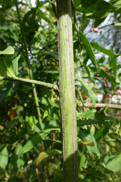 Jetzt besehe ich mir die goldgelben Blüten, die dürfen nämlich nicht gleichförmig symmetrisch sein. Tatsächlich: Die Blütenblättchen sind flügelartig verbogen, die Ränder der einen Seite fein gezähnt und schwarzrot gepunktet, sodass die Blüte – von oben betrachtet – wie ein Windrädchen ausschaut. Für den letzten Nachweis muss ich eine der mit zahlreichen, mit kleineren und grösseren Punkten und Streifen versehene Blütenknospen zerquet-schen: Schwarzroter Saft tritt aus. → weiterlesen